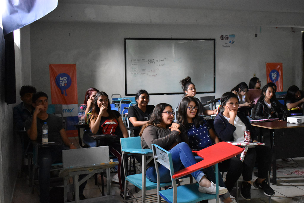 Septiembre 3-7, 2018. Moverte Más llevó a varias escuelas de la región las Muestras de Cortometrajes ganadores del 15º Festival Internacional de Cine de Morelia.